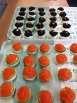 - The vegetarian canapé option is based on white bread and a thin slice of cucumber, topped with Caviart vegetarian caviar (made from seaweed, oh so tasty) and a sprig of boiled Fucus radicans