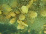- Cut from receptacle showing oogonia (green peas). This is a female seaweed.