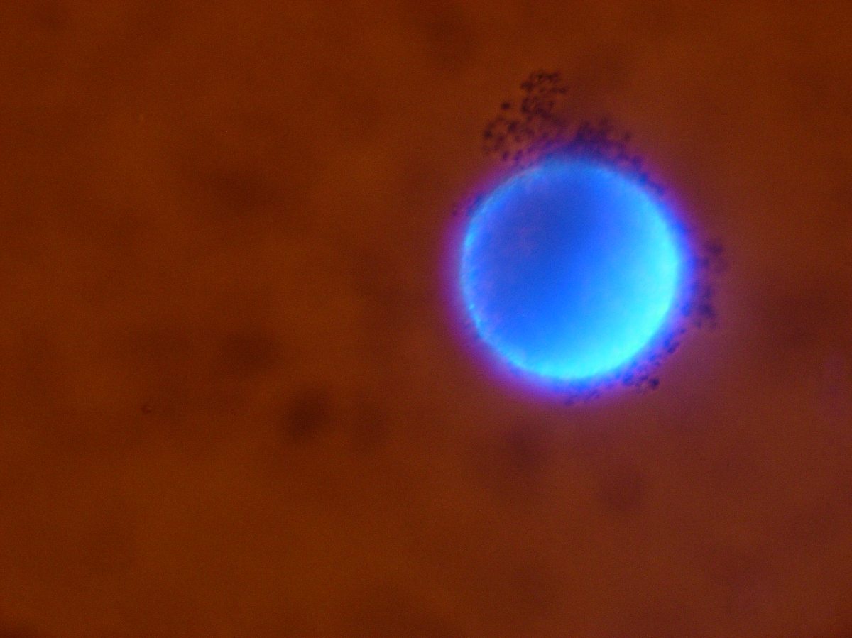UV fertilized egg Published January 22, 2013 at 2592 × 1944 in Gallery ← Previous Next → Fucus egg made to appear blue by colouring it with calcofluorwhite and then use an UV microscope. The dark dots surrounding the egg are sperm trying to penetrate the already fertilized egg. Like Loading...